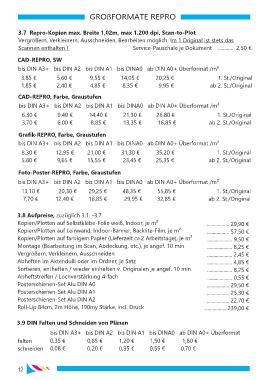 Kopien/Plotten auf farbigem Papier (Lieferzeit ca.2 Arbeitstage), je m² .................... 9,50 €